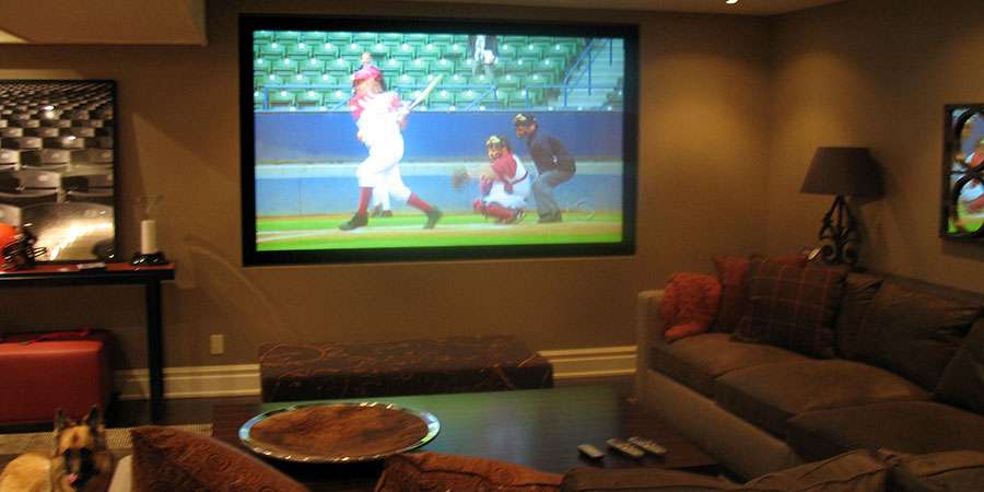 Screen size is the first consideration. Do you want a movie-theater screen that consumes an entire wall or are you willing to settle for something smaller? Next up is sound. What will it take to ensure a thrilling surround sound system experience? Carefully place in-wall speakers that are insulated so no sound escapes. Upwards of 10 speakers, including a subwoofer or two is typical.